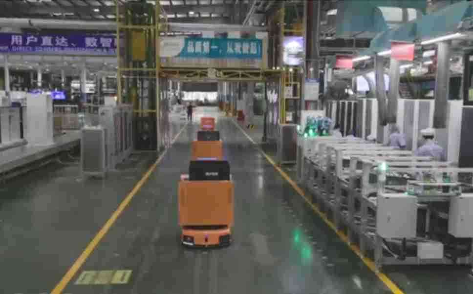 为车载冰箱物流配送打造的智能解决方案,,,包含产中物流通过潜伏举升AMR搬运至线边,,,产后成品物流智能仓储,,,流程包含产中物流智能齐套入库,,,线边安灯叫料AMR智能配送至线边,,,成品入库、、、、出库,,,,通过无人堆高车机器人,,,,智能仓储管理替代人工作业管理,,,,实现更高存储、、、、更高效率、、、更具柔性化的解决方案。。。。